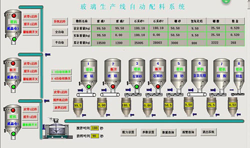 3、在玻璃和石英砂原料倉下部安裝料位開關,物料下限時報警燈提示補料,如自動切換功能打開時,會自動切換到另一個料倉給料,自動切換關閉時,不自動切換。